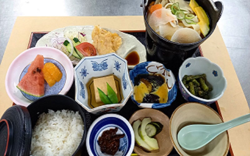 鍋焼きのだんご汁に大分名物とり天または宇佐からあげが付いたボリュームたっぷりでお得な定食です。